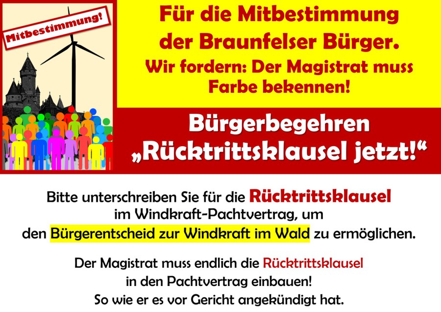 Damit die Stadtpolitik endlich einen Bürgerentscheid zum Thema „Windkraft im Braunfelser Wald“ ermöglichen muss!
