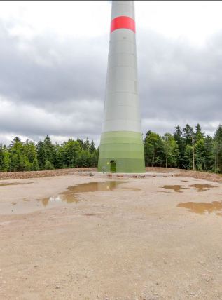 Breite Schotterpisten als Zuwegung, riesige Betonfundamente und die Versiegelung - rund um diese Fundamente - machen immer mehr wertvolle Wälder kaputt.