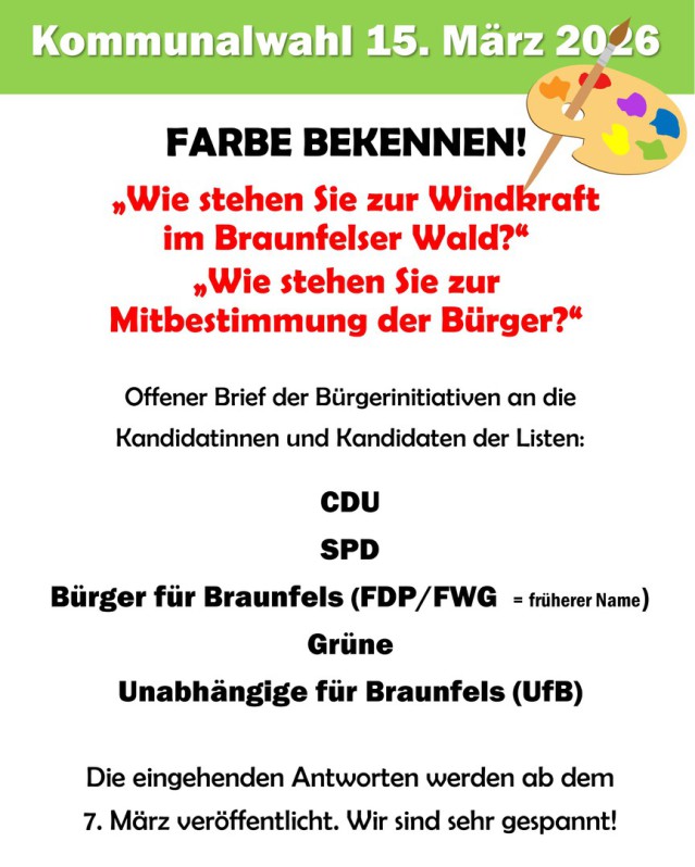 Das ist ein großer Erfolg der Bürgerinnen und Bürger von Braunfels, die immer wieder auf Mitbestimmung beim Thema „Windkraft im Wald“ pochen!