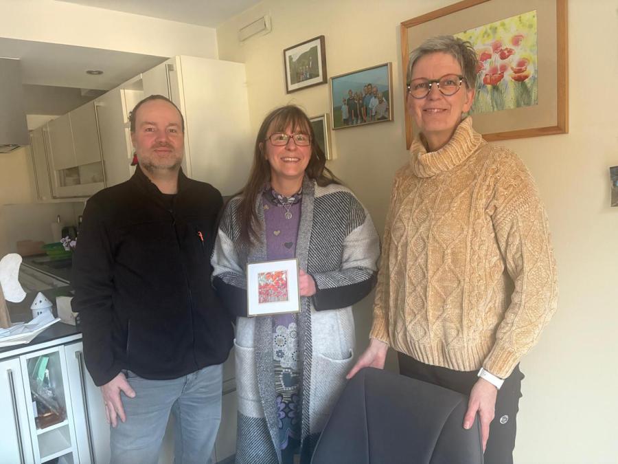 Bei der Übergabe des Bildes hat die Familie Woitasky dankenswerterweise den gleichen Betrag noch als Spende oben drauf gelegt. Somit kamen bei dieser Aktion 80,50 € für die Bürgerinitiativen zustande. Wir bedanken uns auf diesem Wege noch einmal bei der Künstlerin Sandra Egert für das wunderschöne Bild. Und wir bedanken uns natürlich auch noch mal bei der Familie Woitasky für die großzügige Spende und wünschen ihnen alles Gute im neuen Jahr.